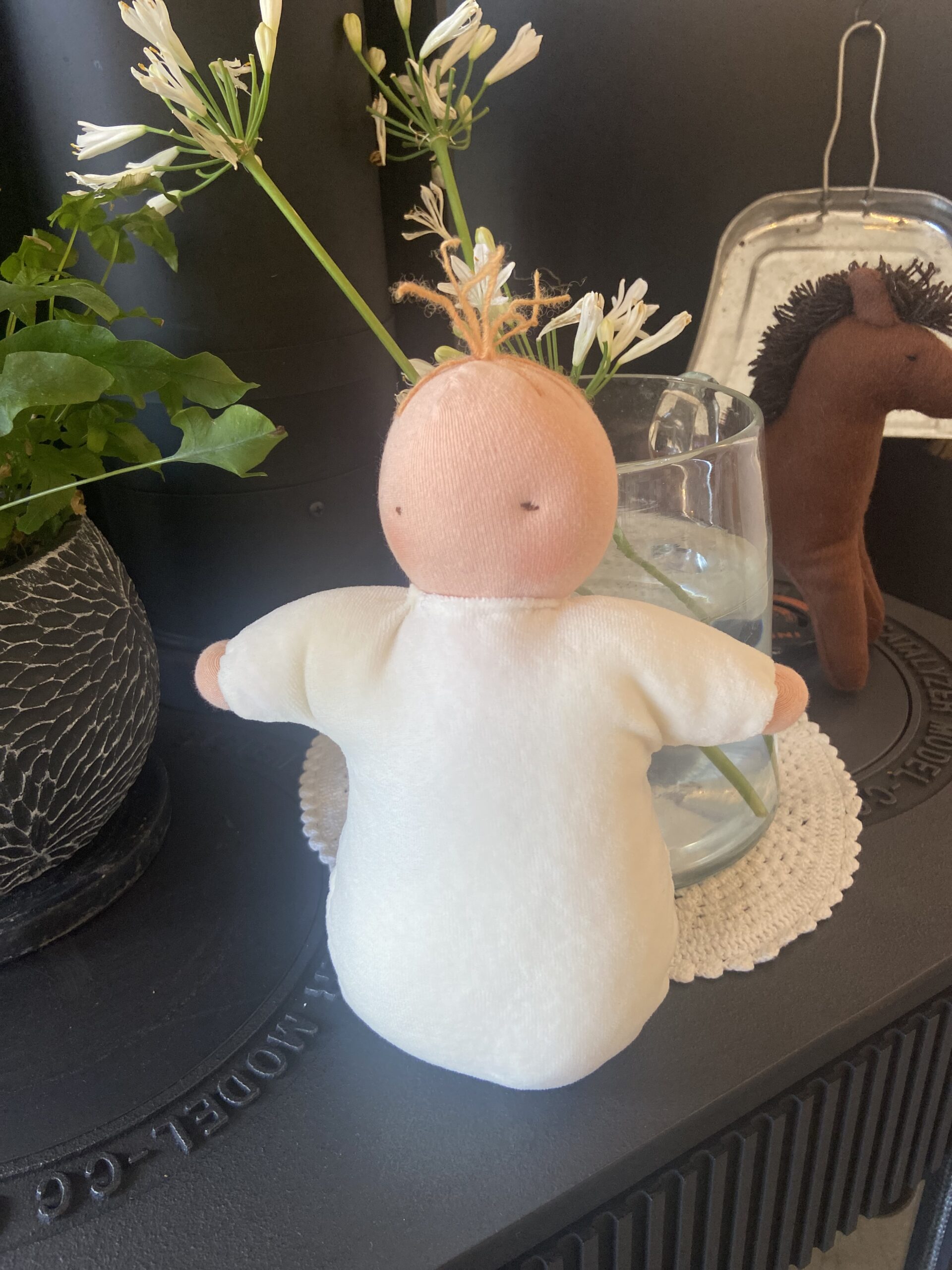 ヴォルドルフ人形は、ドイツのシュタイナー教育の思想に基づいて作られる、子どものための抱き人形です。羊毛やコットンなどの天然素材でできており、肌触りがよく、洗濯しても形を保つのが特徴です。子どもの想像力を養う効果があるとされていて、目や口がシンプルにつけられており、子どもが自分の気持ちを反映させて、ファンタジーの力で「付け足す喜び」を得られるように作られています。お裁縫はちょっと・・・と心配な方も大丈夫!先生がやさしく教えてくれますのでご安心を。